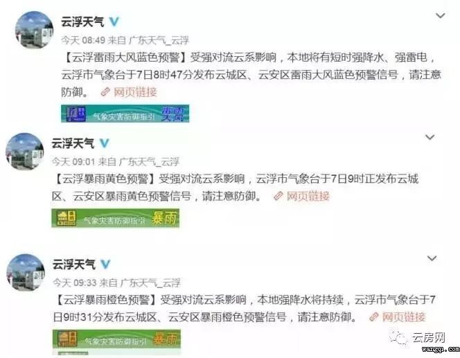 今日上午8:49開始,在不到一個小時內(nèi),云浮氣象局罕見地連發(fā)三條預警信號,等級從"藍色"拉升到"橙色",直到10點左右,干脆變成了"紅色"預警。